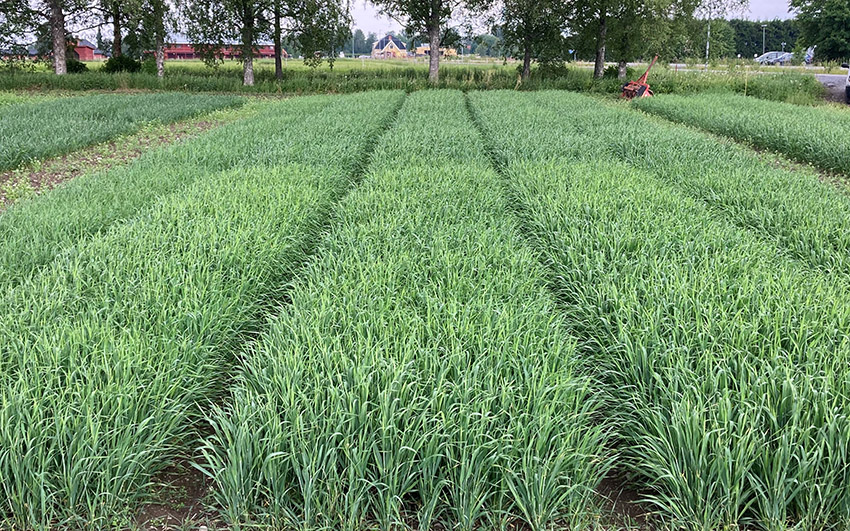 Varje sort är gödslades med 80, 100 och 120 kg kväve (per hektar). Vi hade även ett led där kornet gödslats med en delad giva, 70 kg kväve vid sådd och 30 kg i stråskjutningsfasen.